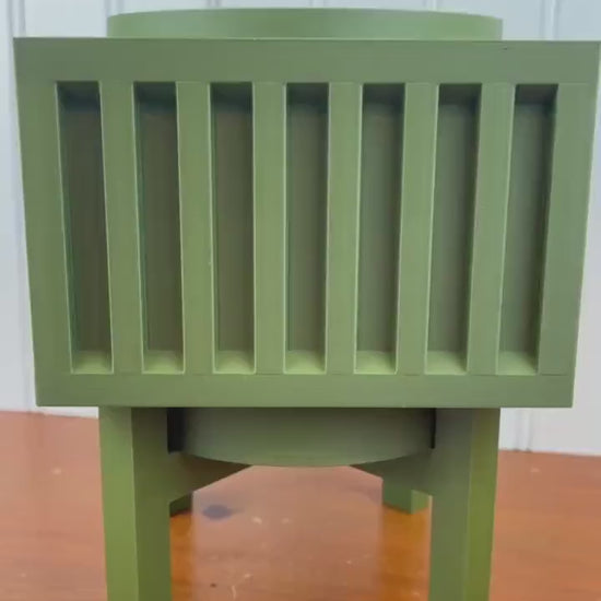 Planter on drip tray & stand: 7.5" tall x 6" wide
