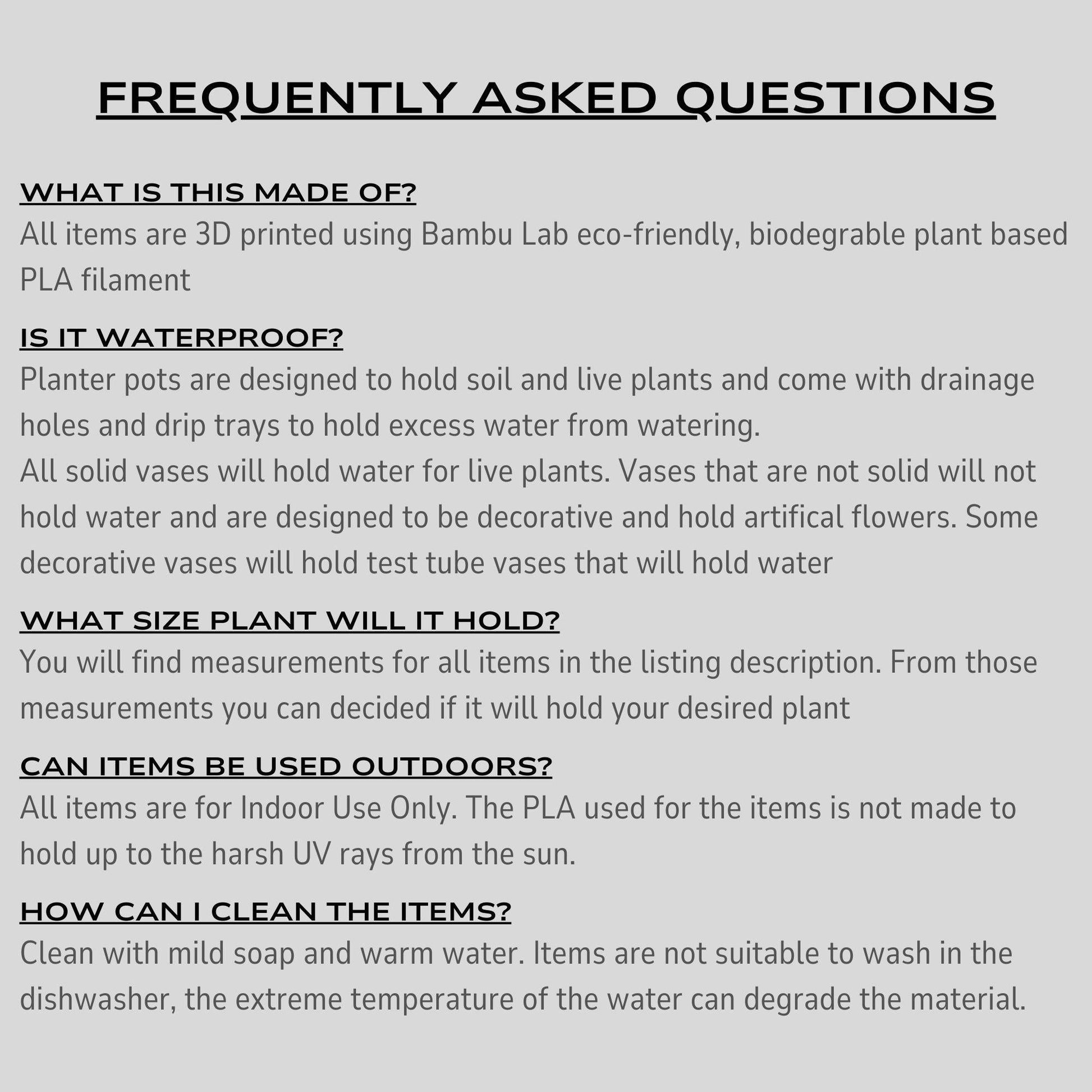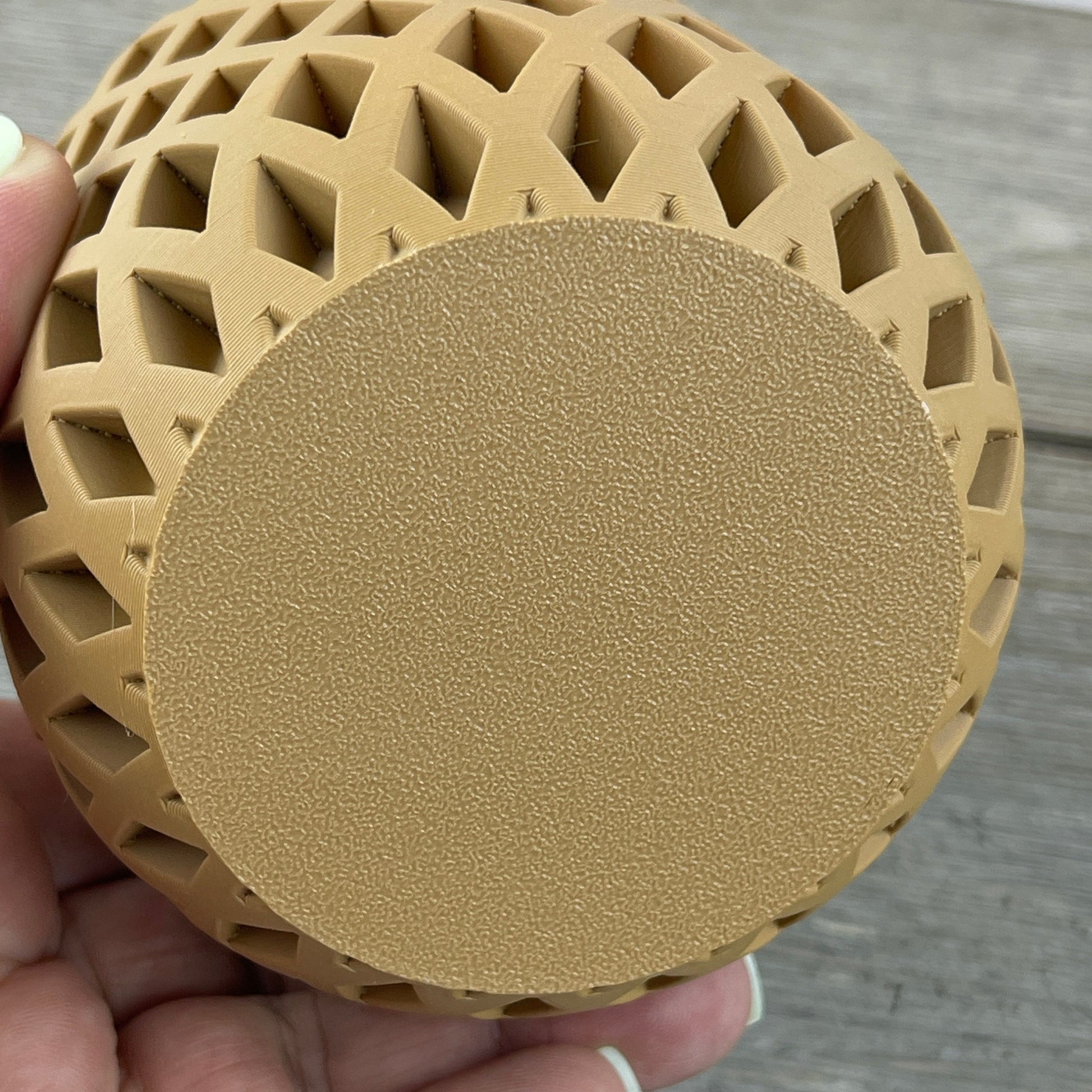 The holder is 3D printed using eco-friendly, biodegradable PLA plastic filament. 3D printing is done by printing layer upon layer of filament to build up and create the print.