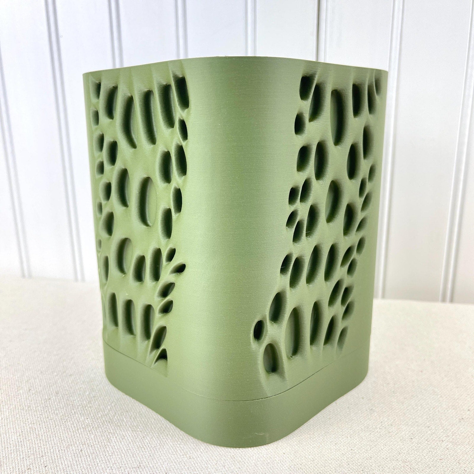 Add a bold, modern touch to your home with this eye-catching 3D printed planter in a soothing matte finish. Featuring a flowing, organic pattern of sculpted cutouts, this planter is the perfect blend of art and function. Whether you're a plant lover or just want to elevate your space with modern decor, this unique planter makes a thoughtful gift or stylish accent for your home. Its contemporary design makes it a standout piece on shelves, desks, or windowsills.