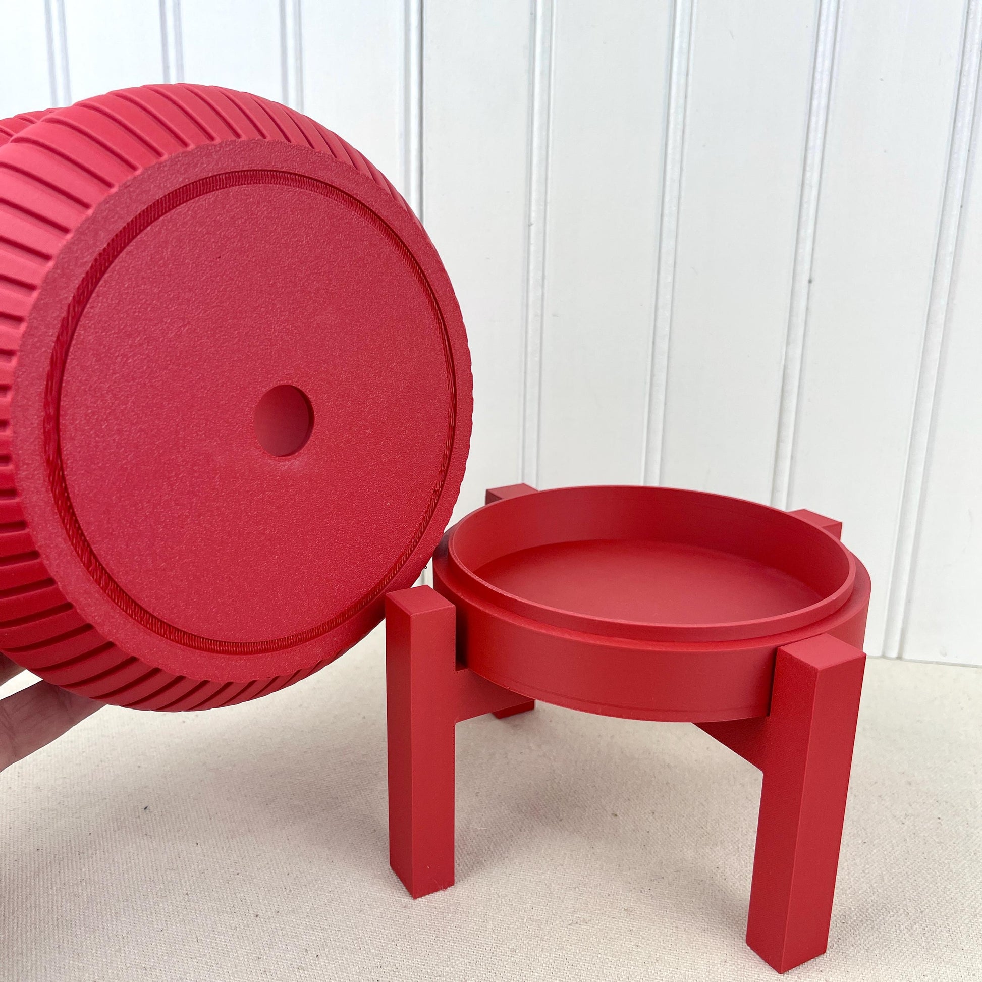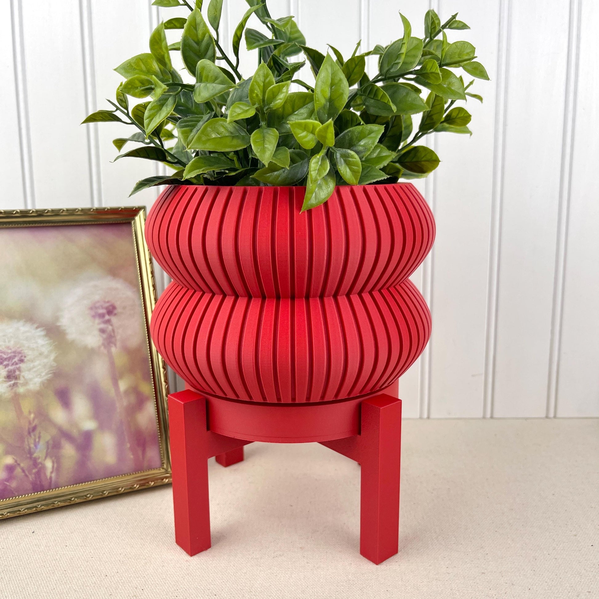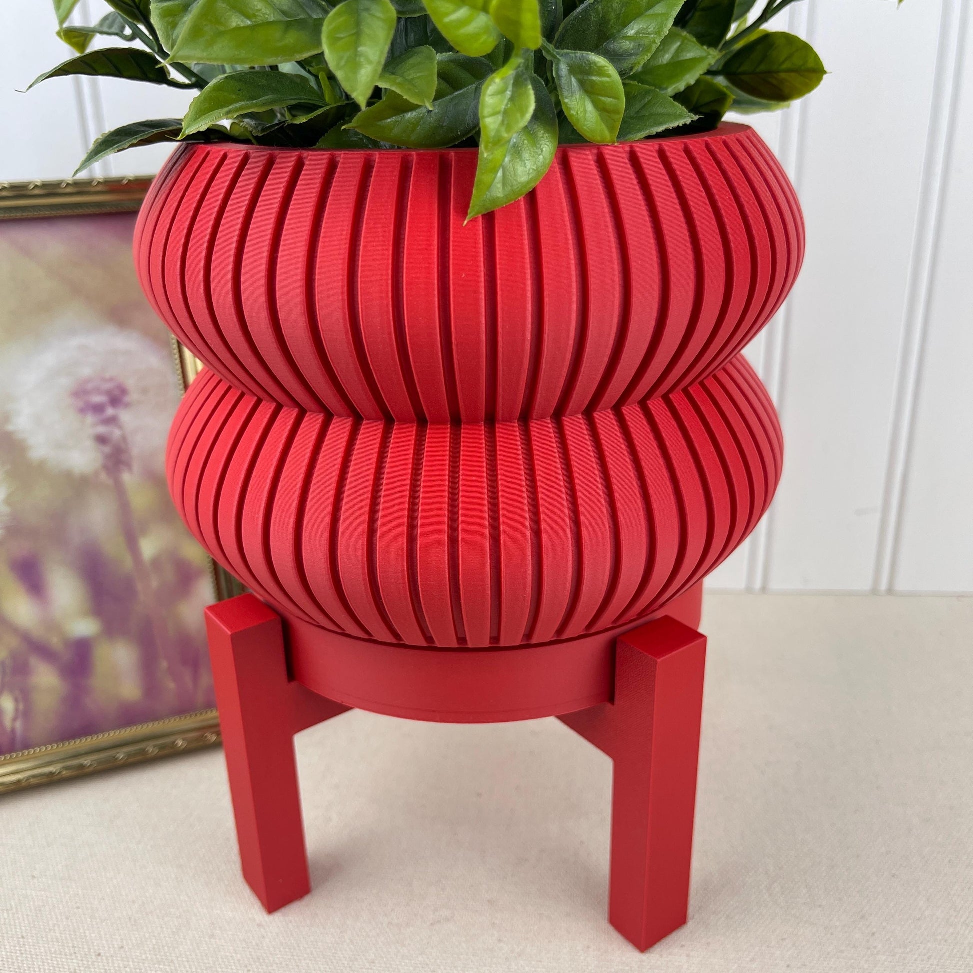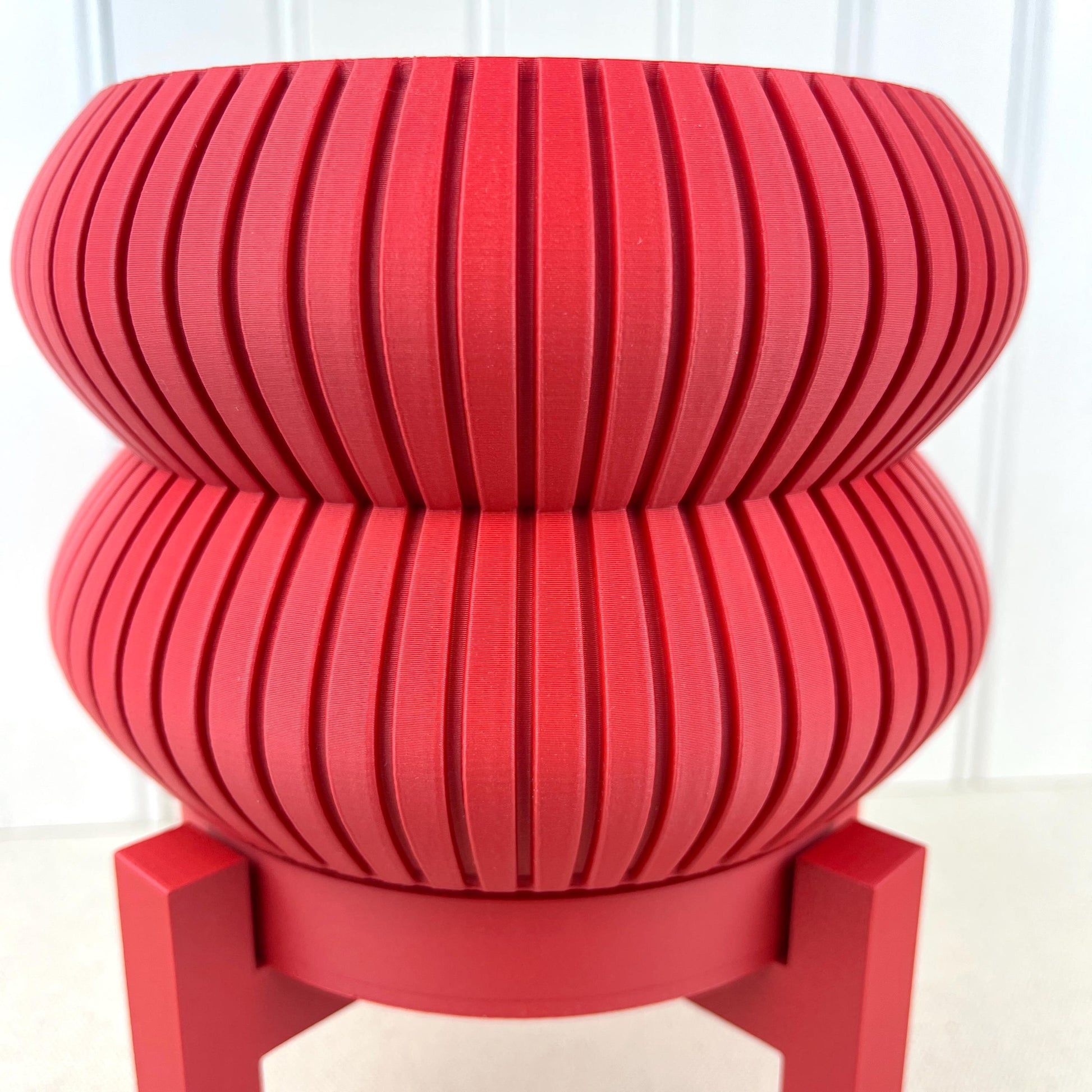 Make a bold statement with this 3D printed planter on a matching stand. Featuring a double-gourd-inspired silhouette and elegant vertical ridges, this planter brings modern flair and architectural interest to your space