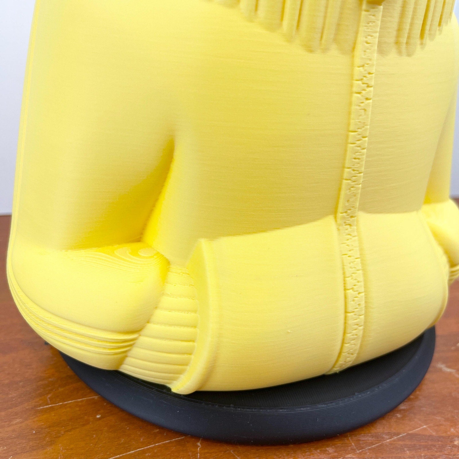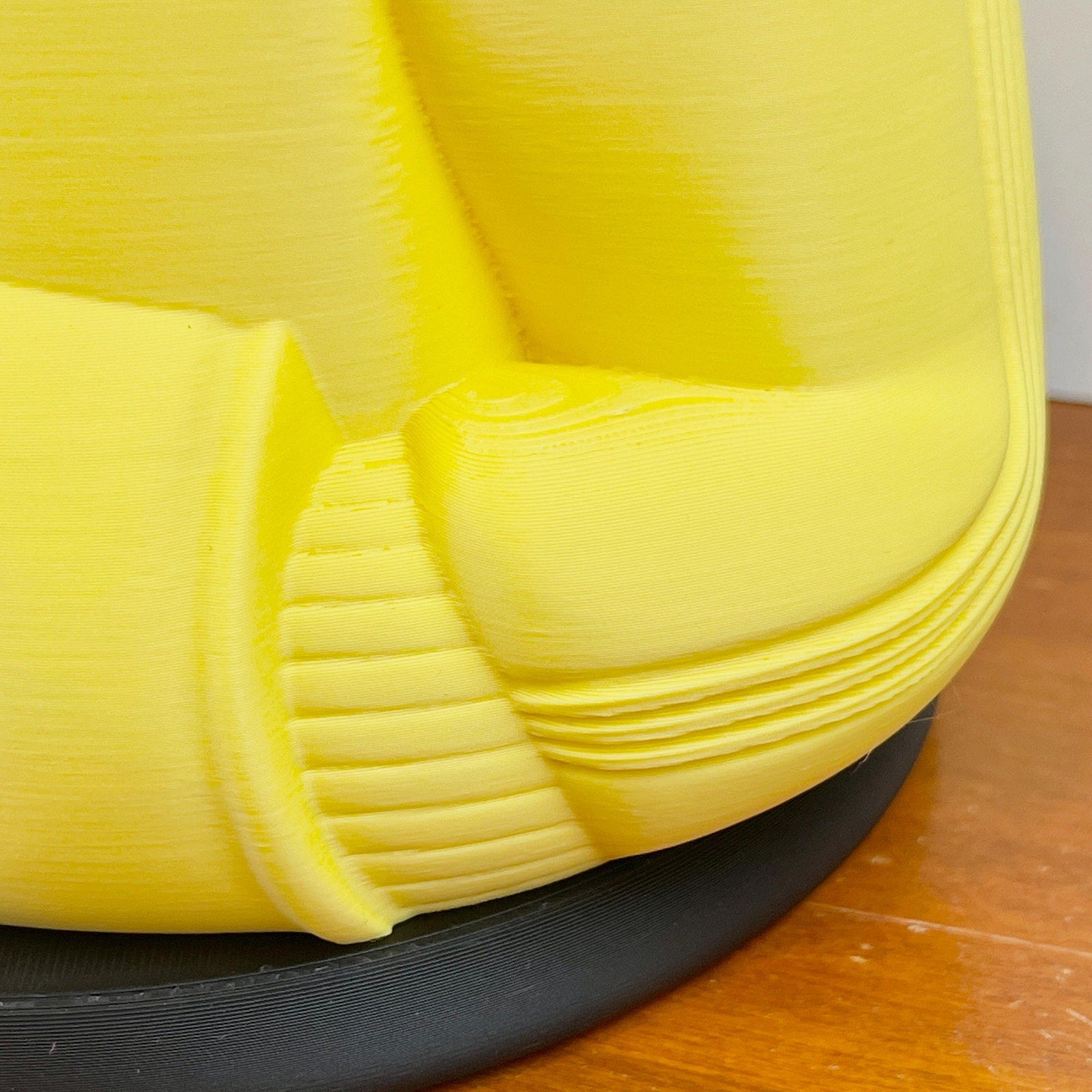 The holder is 3D printed using PLA plastic filament. 3D printing is done by printing layer upon layer of filament to build up and create the print.