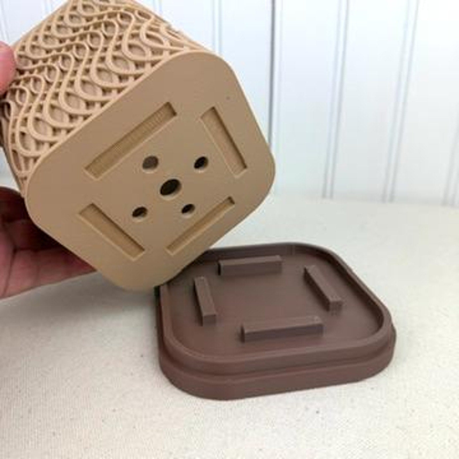 The planter is 3D printed using eco-friendly, biodegradable PLA plastic filament. Layers of filament are printed to create the design. Slight layer lines may be visible, adding a handmade character.