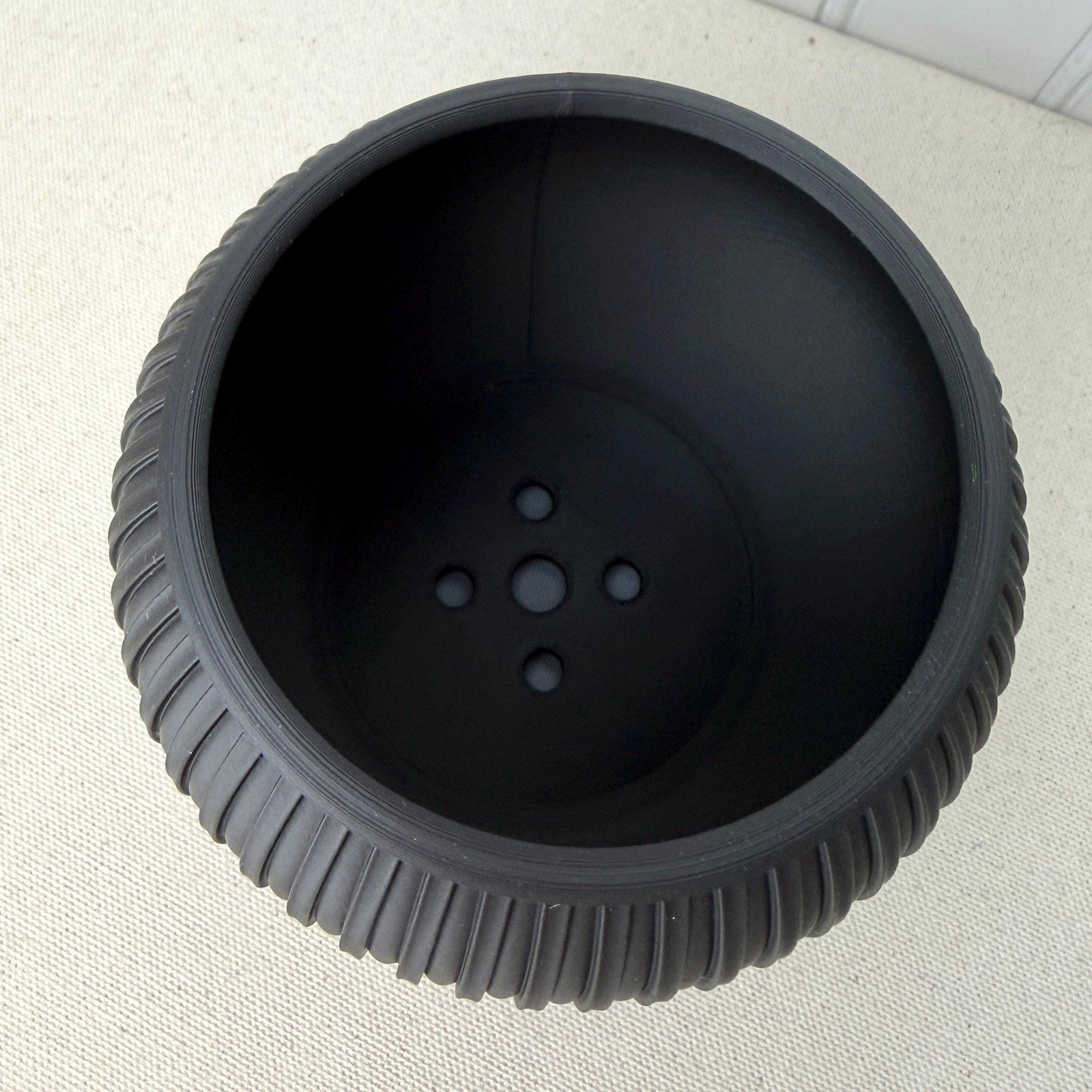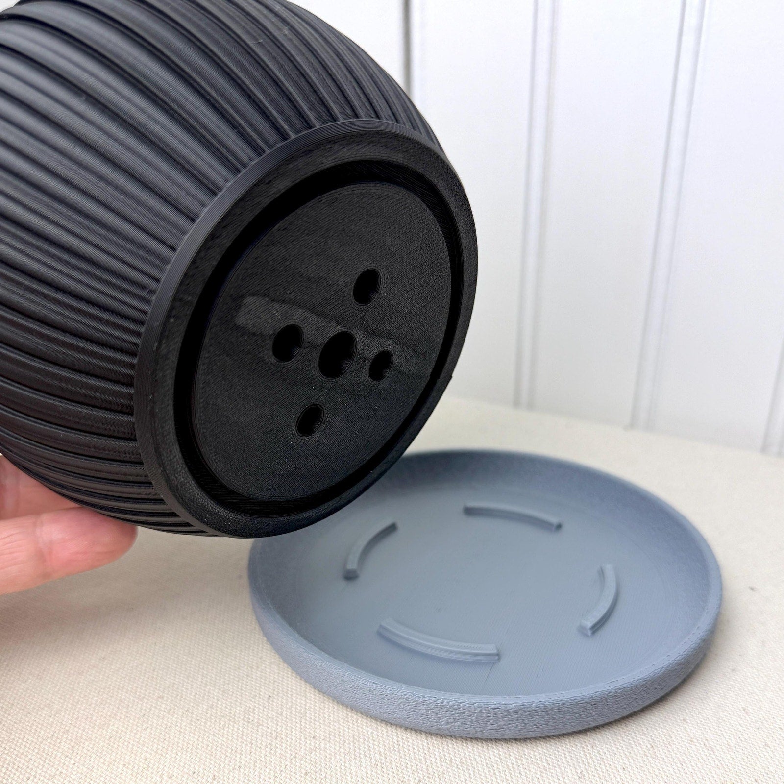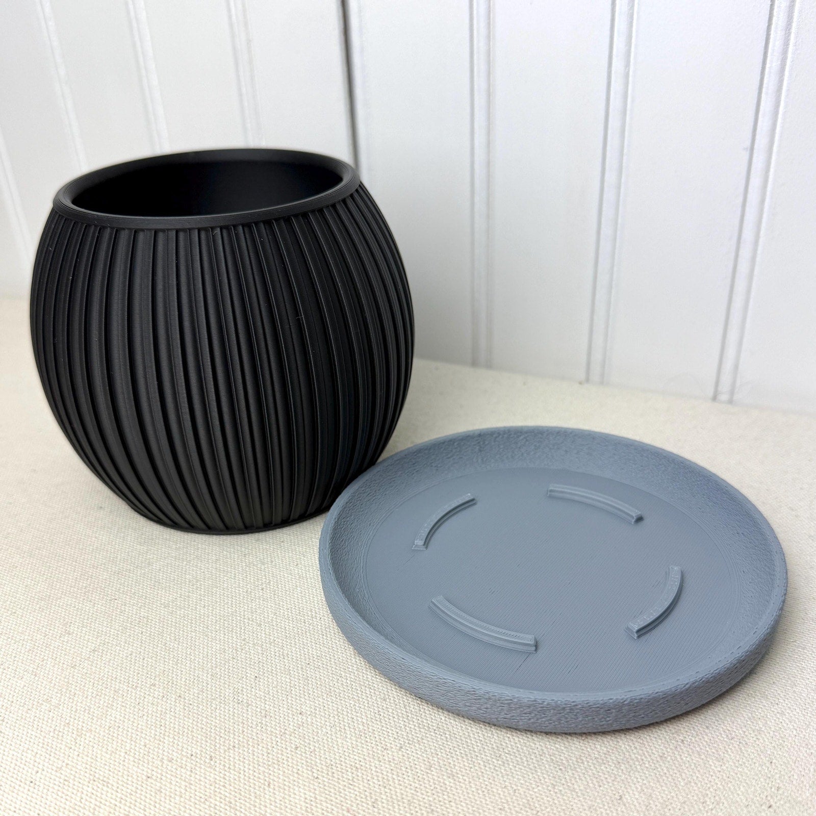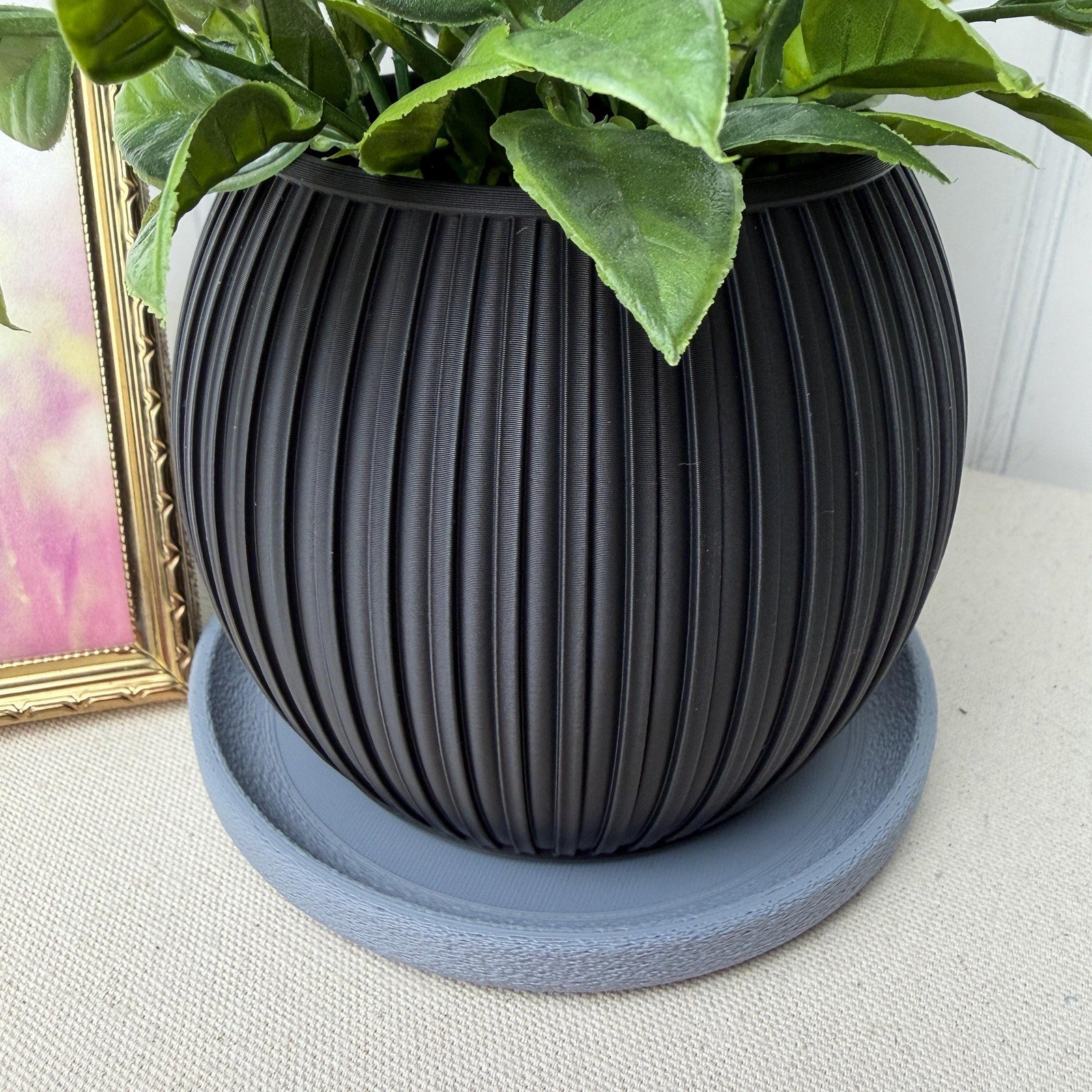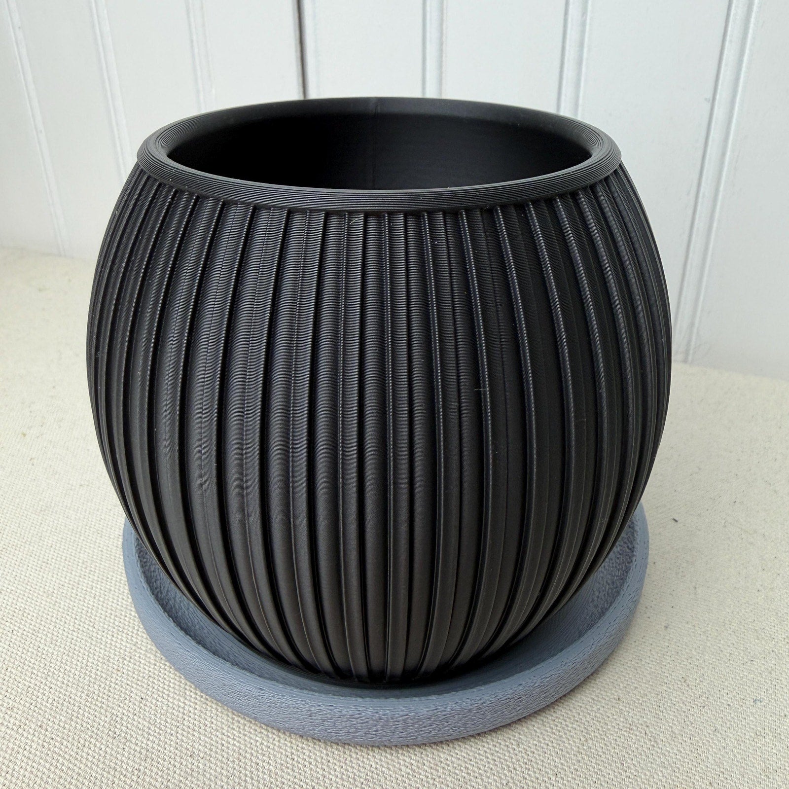 Bring modern sophistication to your plant display with this adorable 3D printed planter. Featuring a vertical ribbed pattern and textured drip tray, combined adds both texture and elegance to this lovely planter. The rounded silhouette and matte finish make this planter a stunning statement piece for any room.