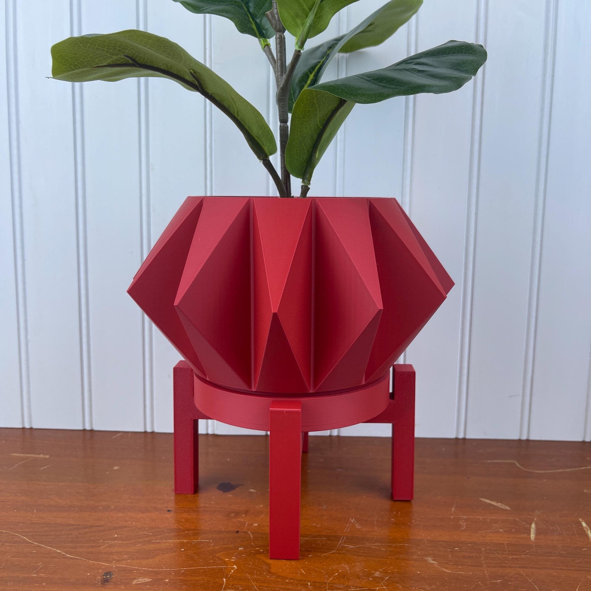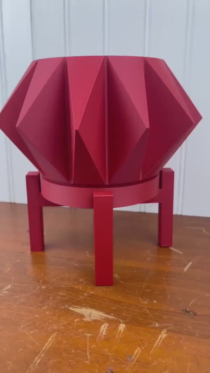 The planter is 3D printed using eco-friendly, biodegradable PLA plastic filament. 3D printing is done by printing layer upon layer of filament to build up and create the print.