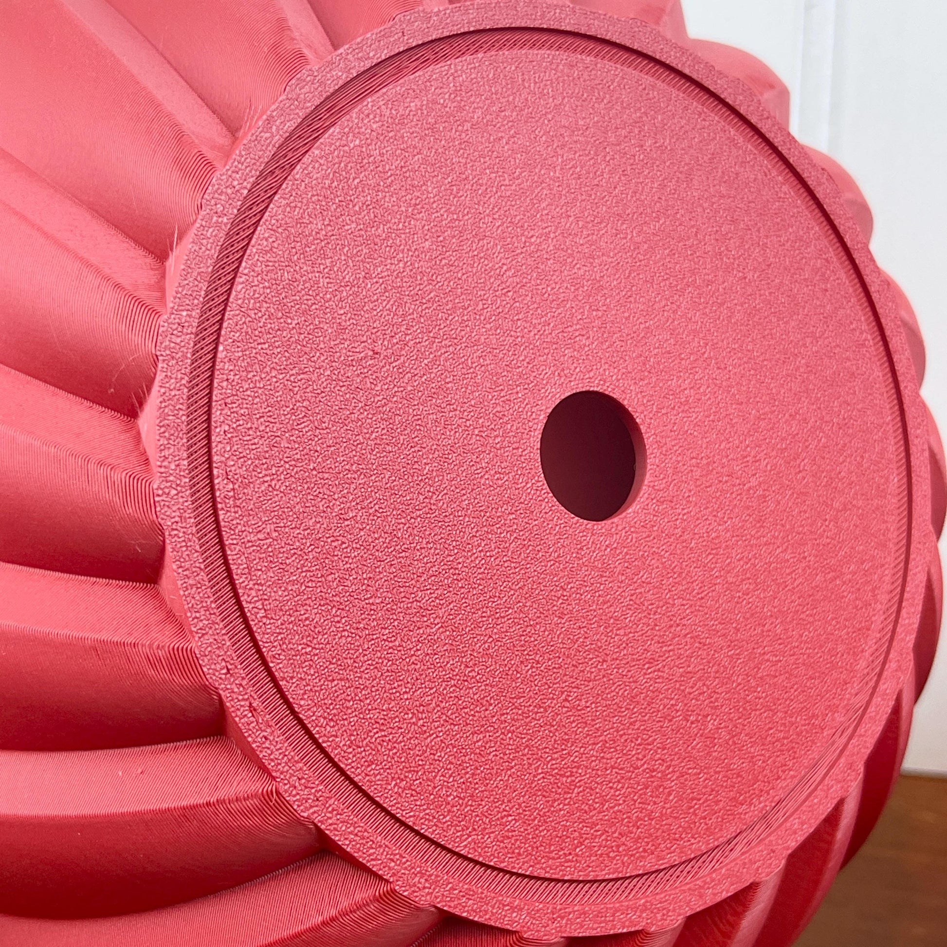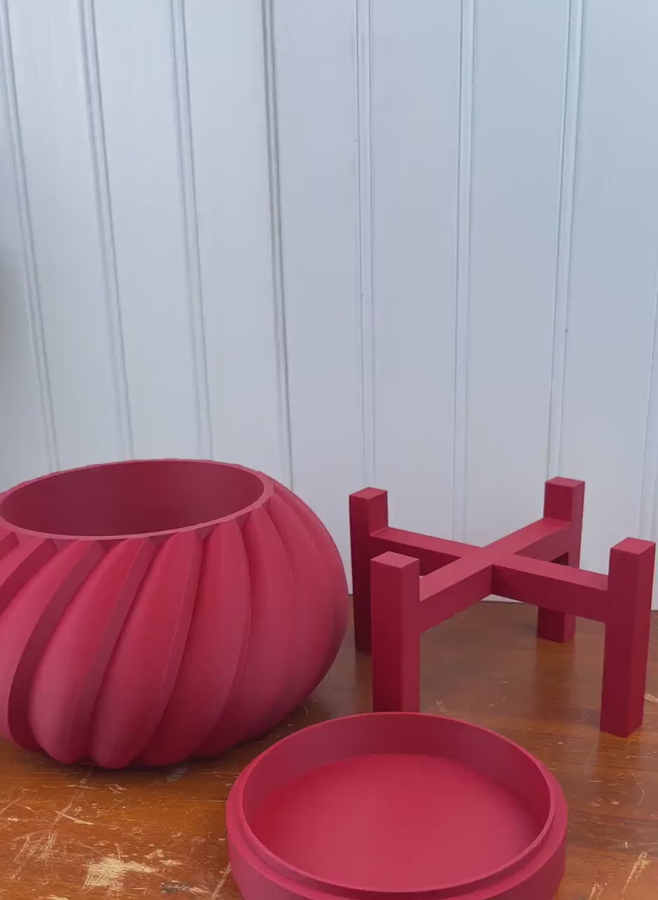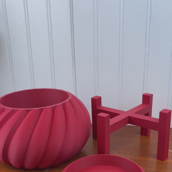 The planter is 3D printed using eco-friendly, biodegradable PLA plastic filament. 3D printing is done by printing layer upon layer of filament to build up and create the print.