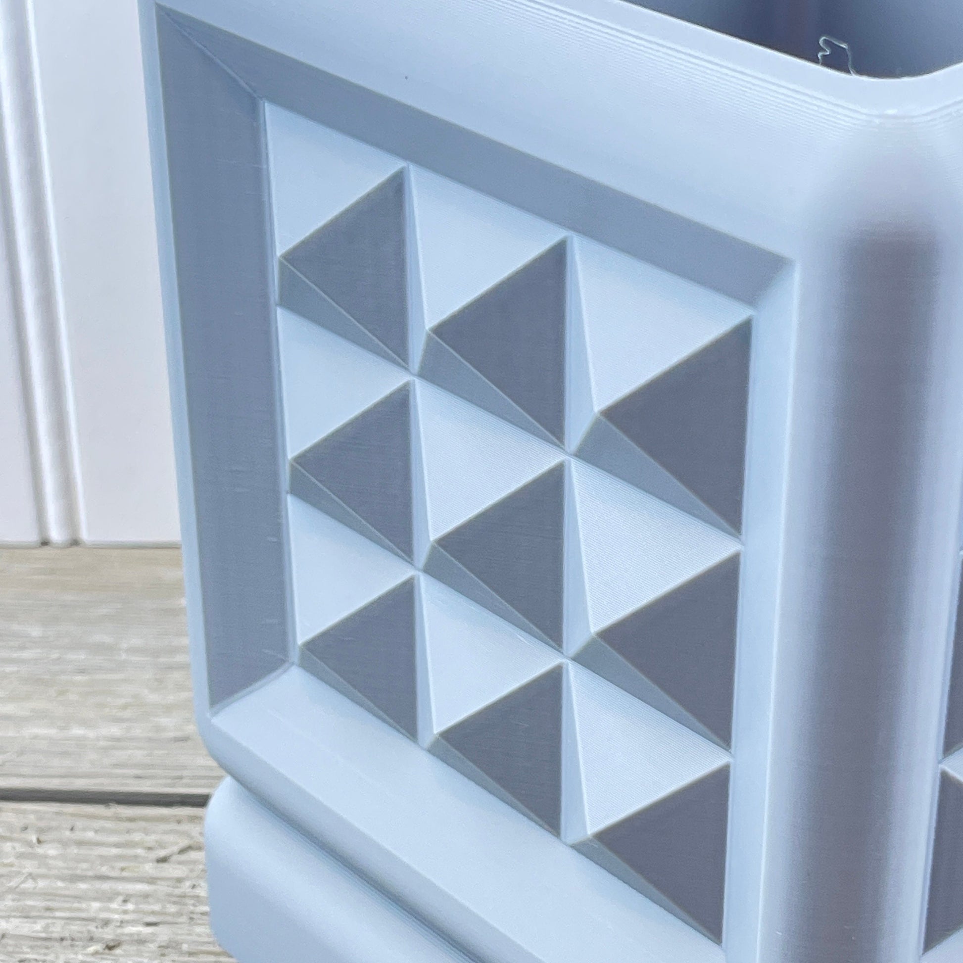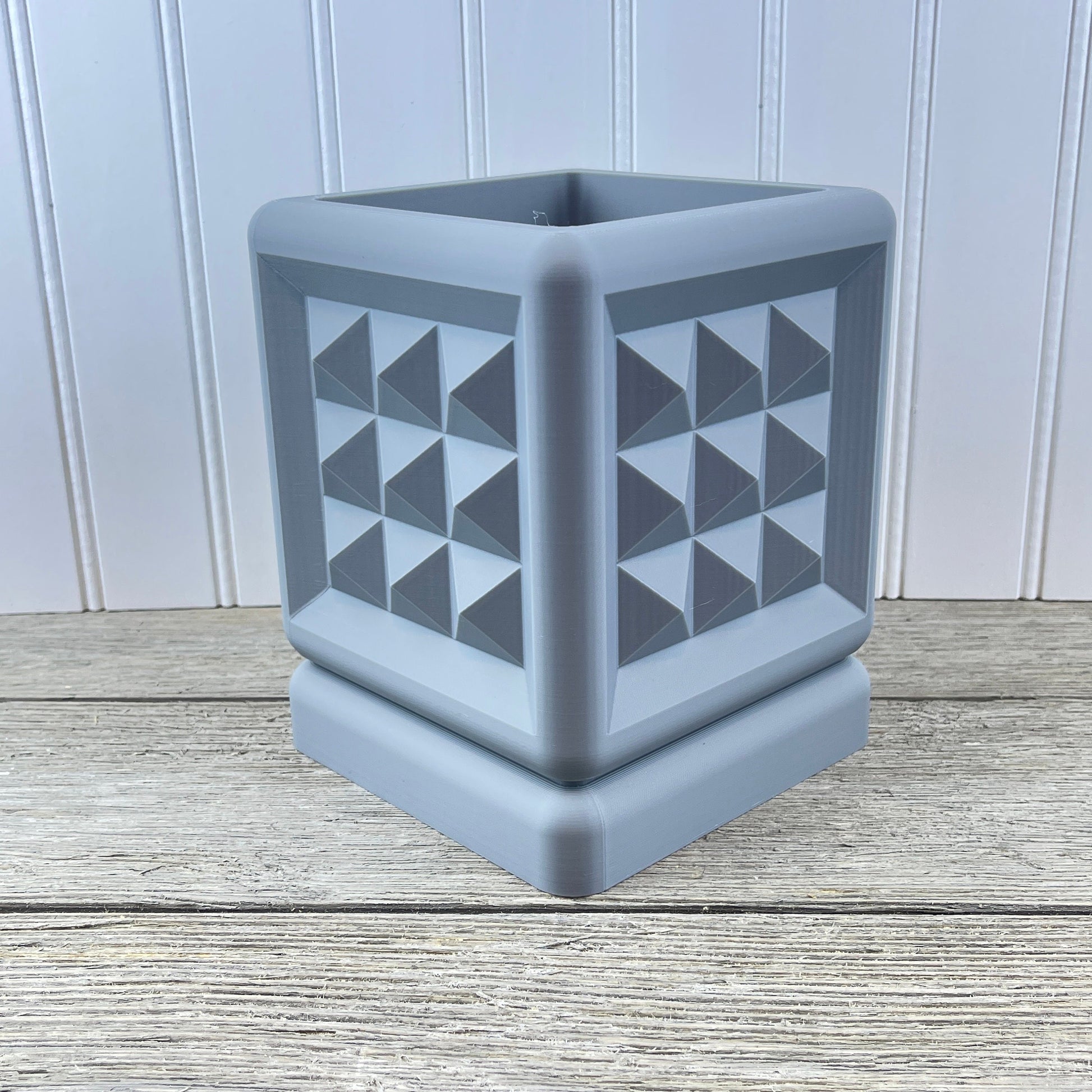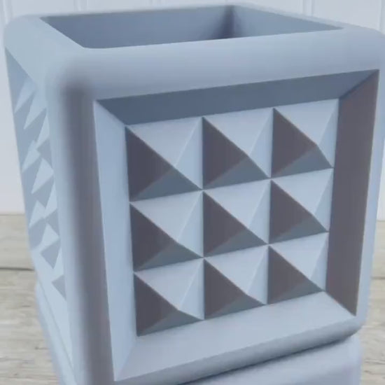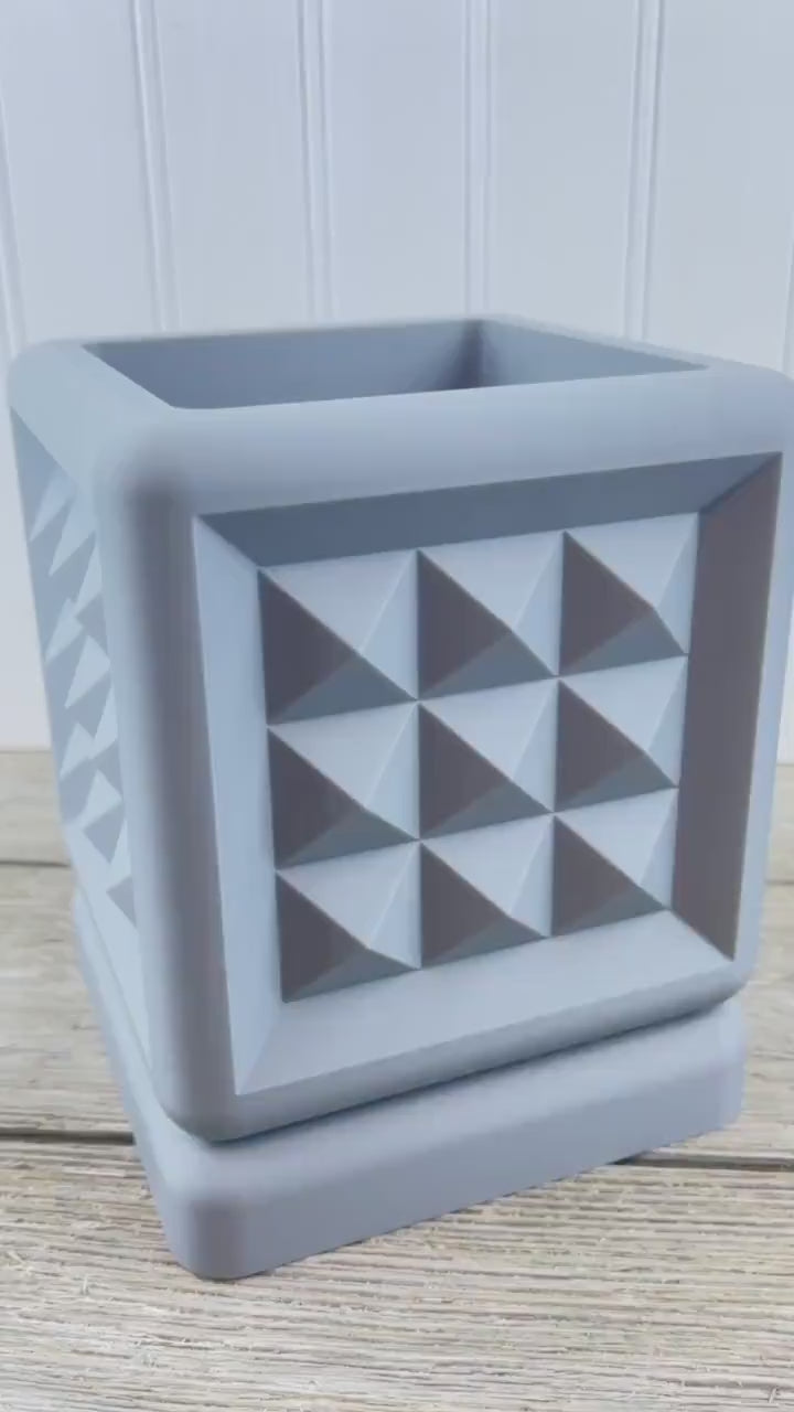 Add some modern and unique style to your home with the Nova Square plant pot. The planter is a great square shape highlighted with spikey/diamond point details on the sides. Would be great for a small flower or succulent. Has drainage holes so that your plant doesn't sit with too much water in it.