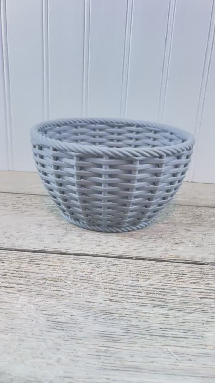 Add a touch of style to your home with this 3D printed woven bowl. This woven bowl adds a modern twist on the traditional wicker/rattan bowl. Would be great in an entryway to drop your items when you walk in the door.